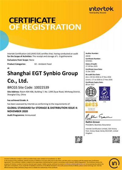 在創思維驗廠網老師專業技術、全程跟進耐心細致輔導以及公司全體員工配合下,一次性順利通過RBC認證并取得A級證書,為將來公司發展奠定了良好的發展基礎,既開拓了市場同時也增加了消費者對公司的信賴,在這里再次祝賀上海麥角硫因科技有限公司2025年一次性成功通過RBC認證并取得A級證書,同時也期待未來再次與創思維驗廠網合作!