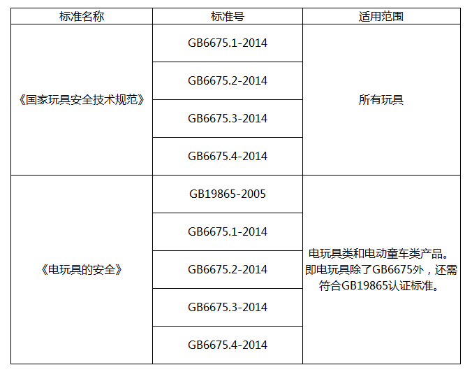玩具類主要的適用執(zhí)行標(biāo)準(zhǔn)如下: